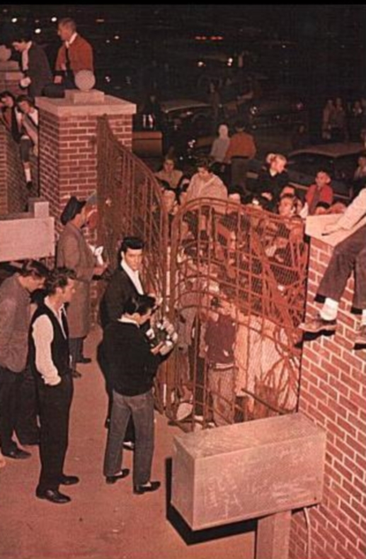 Then after high school I drove my 1957 Custom Oldsmobile to Memphis. As I got to the gate Elvis' limo was just pulling out and I thought, "OH NO, he's going back to California," so I followed the limo until it pulled over to the side and the driver came back to my car and said, "Elvis don't like anyone following him around but he asked me to invite you to the midnight show" It was Joe Esposito. He told me to be at the gate around 12 midnight. That night,I followed Elvis, driving a cream color Lincoln with a van behind him to the theater. We parked and Elvis was walking toward me (to the theater) and extended his hand and said something like "Hi, I'm Elvis" (I would have never guessed!!). I shook his hand and began walking at his right side. I believe Priscilla was at his left. He asked me, "I hear you're in a band?" I said "No sir" (at the time I wasn't), "but I sing and play the guitar." (I think he already guessed that) During the movie, "Tammy and the Doctor," if I recall correctly, Elvis would crack jokes and everyone would laugh and just enjoy it. After the show we went back to the gate and I got out my guitar and sang some of Elvis' songs to fans and the gate guards. One was Elvis' cousin Harold Loyd.