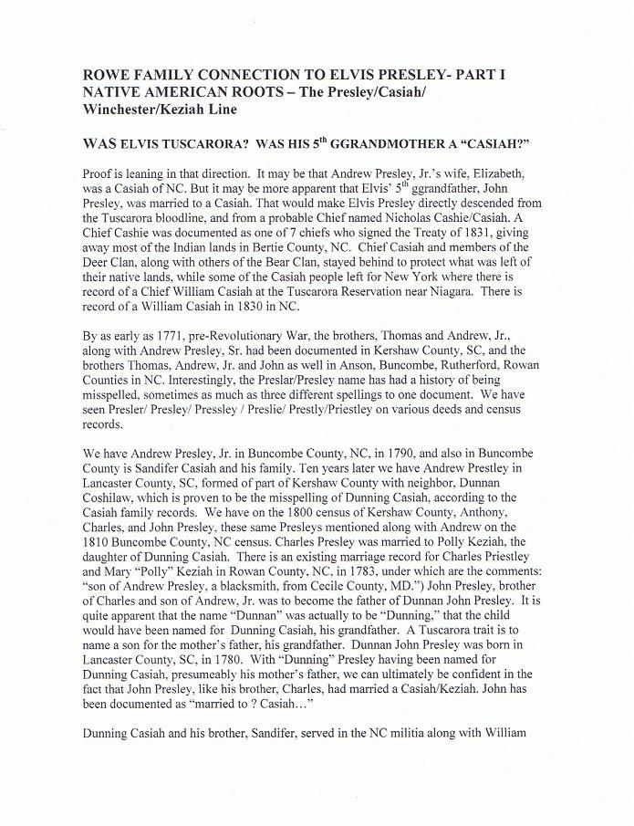 perhaps, Creek or Chickasaw, Elvis' direct Presley line