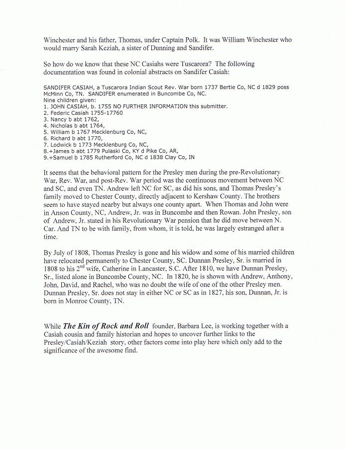 Among some of the Casiah/Keziah intermarriages to the Presley